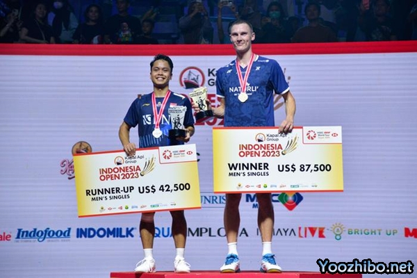北京时间06月18日,在雅加达举行的2023年印度尼西亚羽毛球公开赛男单决赛中,丹麦选手安赛龙以2比0战胜印度尼西亚选手金廷,夺得冠军。