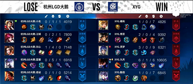 杭州LGD大鹅禁用:大乔、盾山、关羽、李元芳