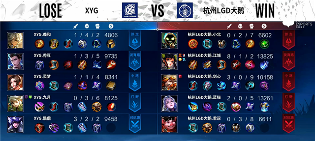 杭州LGD大鹅禁用: 鲁班大师、大乔、弈星、西施