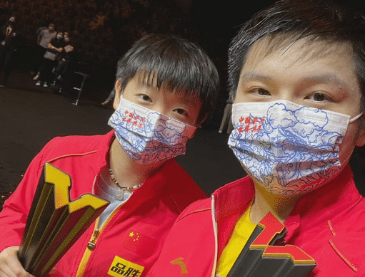 然后是冠军的合影,樊振东和孙颖莎合影,两人都是本届赛事的大赢家,恭喜。