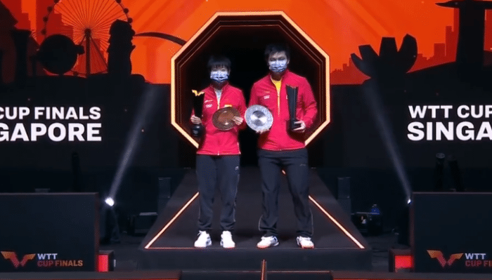 24直播网12月08日讯 ,昨天首届新加坡WTT世界杯总决赛落下帷幕,男单层面,樊振东以4-1击败张本智和,成功拿下冠军。女单层面,孙颖莎以4-2击败王艺迪,勇夺冠军。樊振东2021年斩获5项冠军,包括奥运会男单、全运会男单和男团、世乒赛男单和世界杯总决赛男单。孙颖莎则是在2021年第一次拿下女单冠军,此前他3度进入女单决赛,全部输球,这次终于实现目标。