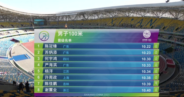24直播网9月20日讯 ,全运会田径赛场,男子100米开始了争夺,参赛的国内好手云集,其中包括了苏炳添、谢震业和吴志强等等。这其中苏炳添迎来了自己奥运会的首秀,他在预赛第4组的第5道出战,一出场就引发了欢呼。最终苏炳添跑出了10秒23,成功的以小组第一、预赛总成绩第二名的身份晋级到半决赛。