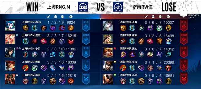 上海RNG.M禁用:鲁班大师、澜、孙膑、盾山