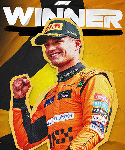 最终诺里斯无悬念夺冠,维斯塔潘亚军,皮亚斯特里季军,周冠宇第15。