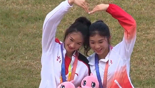 同时吴艳妮还和亚军选手关系很好,一起比心庆祝。