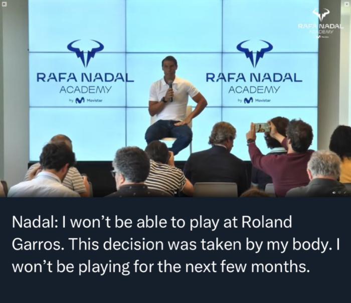 24直播网讯05月19日晚,西班牙网球巨星纳达尔召开新闻发布会,并且亲口退出即将开打的法国网球公开。37岁的西班牙传奇,还暗示明年可能会退役,2024年将会是他生涯最后1年。