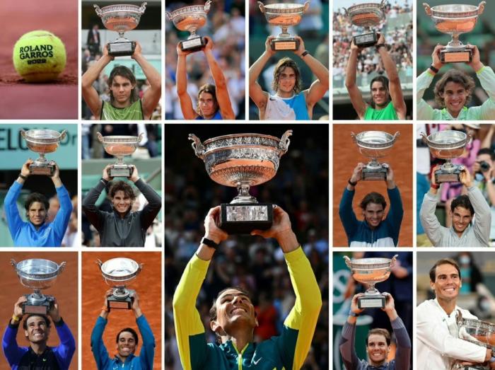作为男子网坛传奇巨星,纳达尔自从2001年正式转入职业网坛以来,已经斩获了22座大满贯冠军。包括14次法网冠军,2次温网冠军,2次澳网冠军和4次美网冠军。尤其是法网,纳达尔曾14次夺得火枪手杯,是历史上夺得法网冠军最多的球员,当之无愧的“红土之王”。