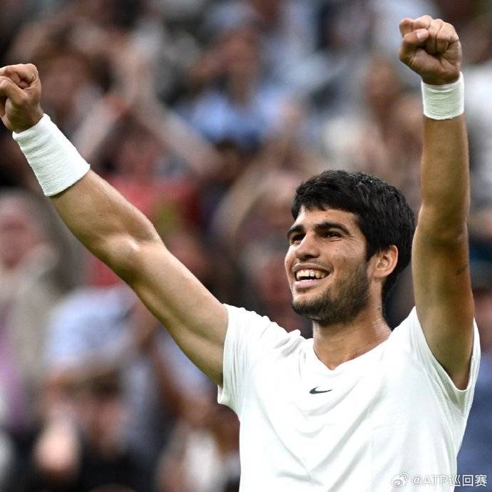 24直播网讯 北京时间7月13日凌晨,2023赛季网球大满贯温布尔登公开赛继续进行,在男单上半区的八强比赛中,头号种子阿尔卡拉斯没有遭遇太大抵抗,7-6/6-4/6-4直落三盘战胜6号种子鲁内,生涯首进温网四强。