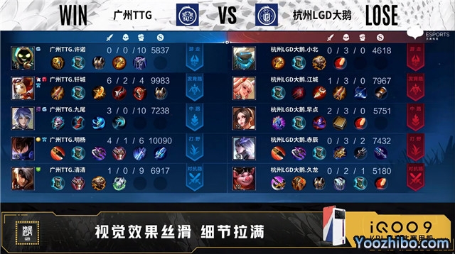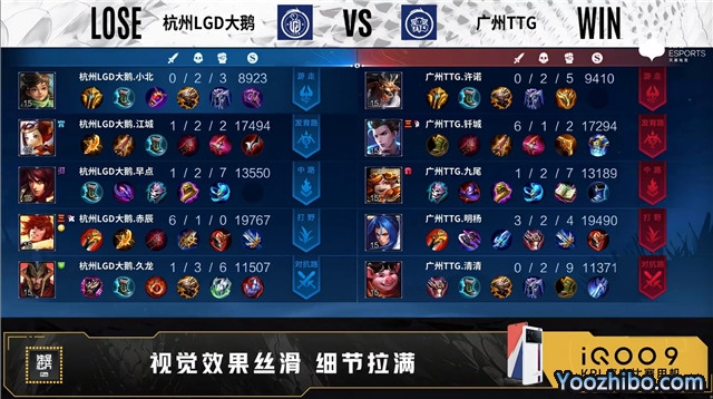 双方常规开局。1分51秒野区团战广州TTG打出1换3。2分43秒杭州LGD大鹅抢到暴君。3分15秒广州TTG对抗路打出0换2。4分04秒杭州LGD大鹅摧毁敌方发育路外塔。4分55秒野区团战双方2换2。8分01秒广州TTG拿下暴君。8分23秒广州TTG发育路击杀暃。8分44秒广州TTG拿下主宰。9分54秒广州TTG摧毁敌方中路外塔。10分37秒广州TTG拿下暗影主宰。11分20秒广州TTG拿下暗影暴君。12分34秒杭州LGD大鹅发育路击杀关羽,广州TTG摧毁敌方对抗路高地塔。14分24秒广州TTG拿下暗影主宰。15分54秒广州TTG拿下暗影暴君。16分18秒广州TTG摧毁敌方中路高地塔。16分57秒发育路团战广州TTG打出1换5。17分12秒广州TTG摧毁敌方水晶拿下比赛。