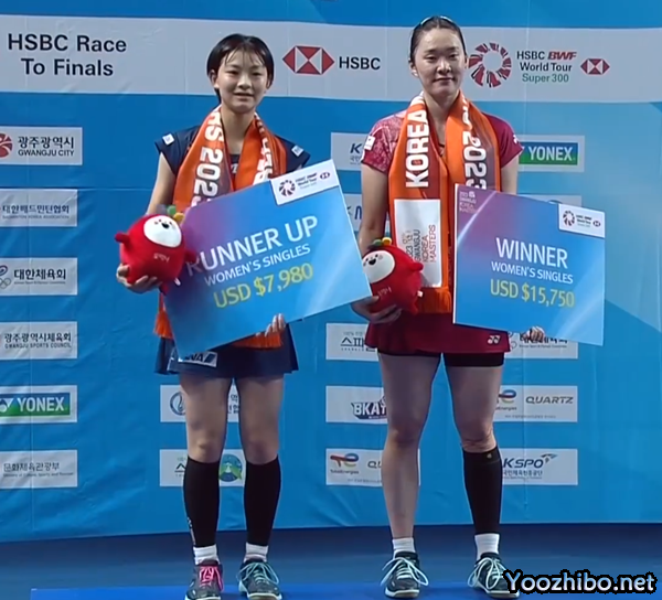 24直播网讯北京时间11月12日,2023韩国羽毛球大师赛女单决赛金佳恩vs宫崎友花 。韩国女单名将金佳恩以19-21先输一局的情况下,以21-17,21-12,连胜两局,总比分2-1逆转日本小将宫崎友花,成功夺冠,职业生涯首次斩获超级300级别的冠军。