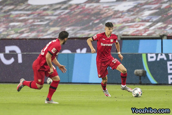 第39分钟,哈弗茨禁区中路左脚抽射,皮球直挂球门左上角,勒沃库森扩大比分,2-0!