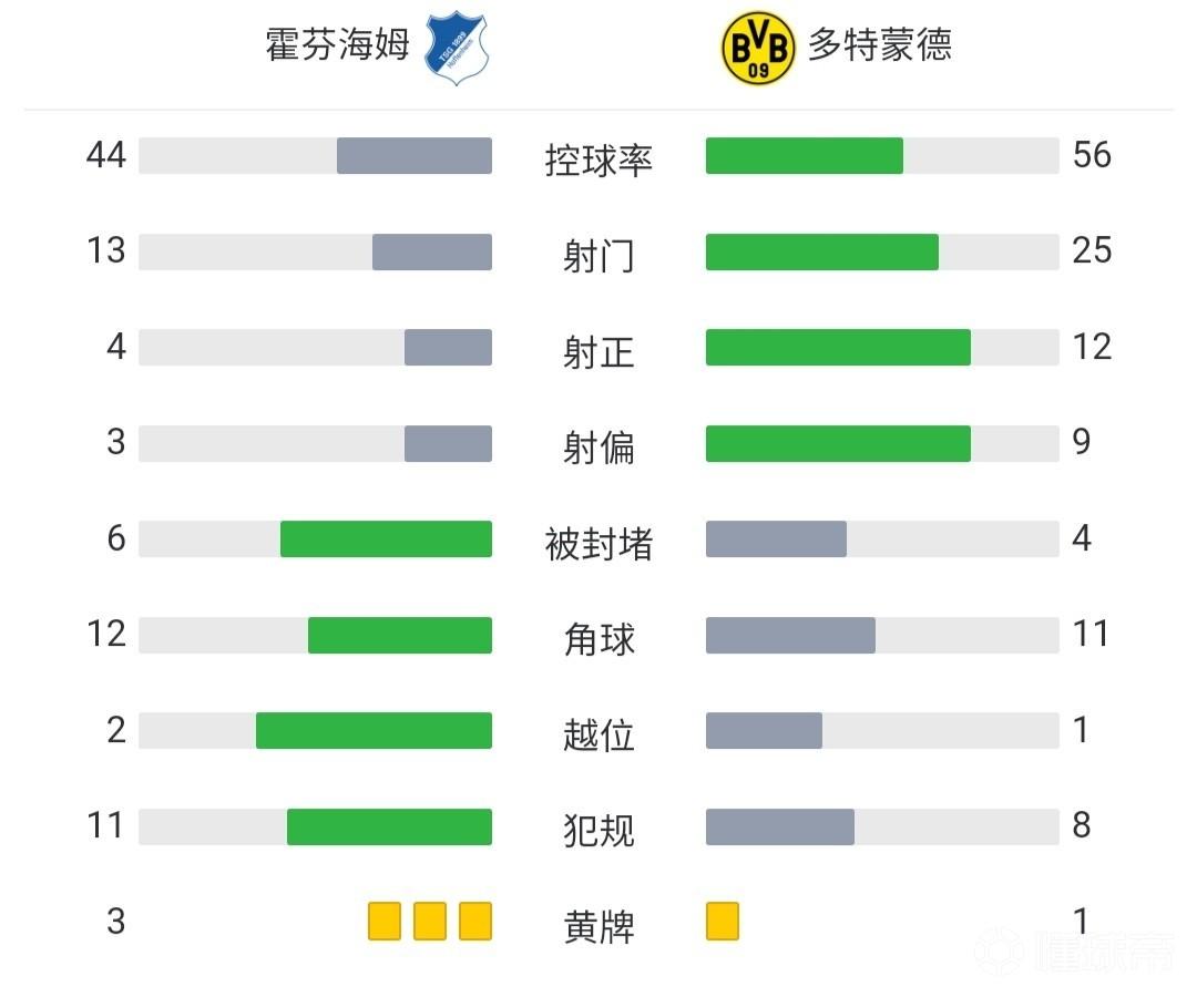 最终多特蒙德1-0击败霍芬海姆,暂时登顶积分榜。