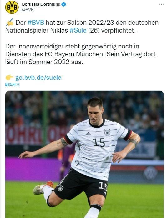 24直播网02月07日讯 据多特蒙德官方消息,球队签下拜仁的26岁中卫聚勒,球员会在今夏以自由球员身份免费加盟,双方签约4年。