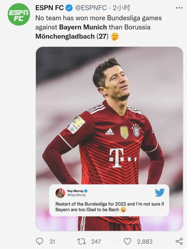 24直播网01月08日讯 根据ESPN统计,门兴在联赛中至今已经27次击败拜仁,这一数据是德甲所有球队中最多的。