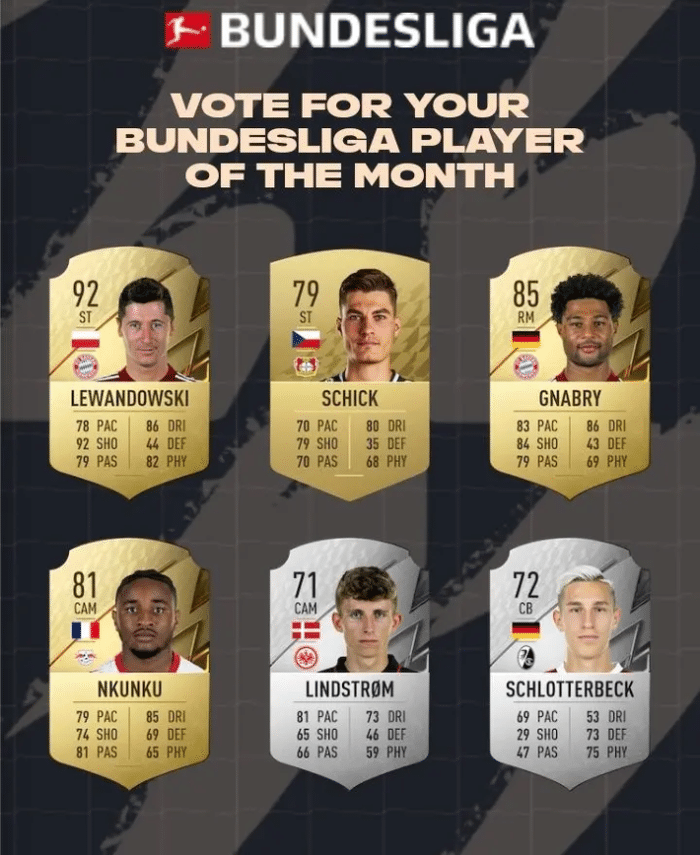 24直播网01月06日讯 刚刚,德甲官网公布了本赛季德甲12月份的最佳球员候选名单。
