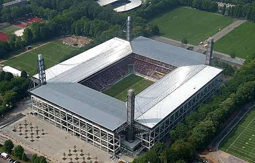 其后1972年至1975年及2002年至2004年进行扩建,2003年为迎接2006年世界杯决赛周而重建球场。现时是德国甲组足球联赛球会科隆及欧洲美式足球联盟科隆百年的主场球场,同时是2006年世界杯十二个比赛球场之一,共举行五场比赛(四场分组赛及一场十六强比赛)。球场与“莱茵能源公司”的命名合约将于2009年届满。球场在平日联赛可容纳50,997名观众,当举行国际赛时因禁止立席而减为46,134名观众。在球场的北看台设有科隆队的博物馆。