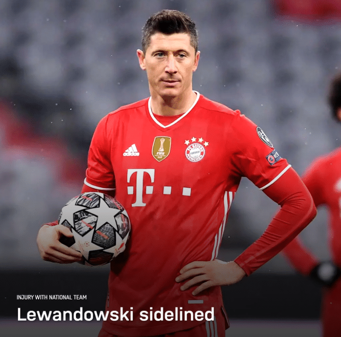 莱万在波兰对阵安道尔的比赛中受伤下场,现在他已经提前返回俱乐部接受治疗。