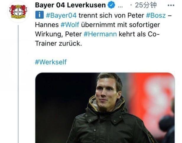 24直播网3月23日讯 ,德甲老牌劲旅勒沃库森俱乐部官方宣布解雇球队的荷兰籍主帅博斯,同时离开的还有他的两名助教和体能教练。而在解雇博斯的同时,勒沃库森也确定了球队的新任主帅,那就是德国U18男足的少帅沃尔夫,39岁的他将会执教勒沃库森至本赛季结束,此前沃尔夫曾在德国足协任职,并且执教过斯图加特、汉堡和根克队。此外俱乐部前球员和前主帅彼得-赫尔曼,将担任助教。