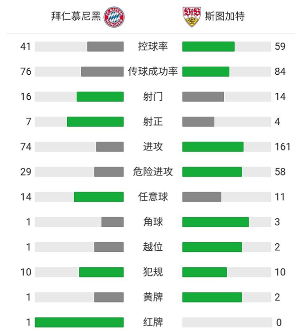 第23分钟,球进了!穆勒左路传中,莱万门前高高跃起头球攻门得手。拜仁慕尼黑3-0斯图加特。