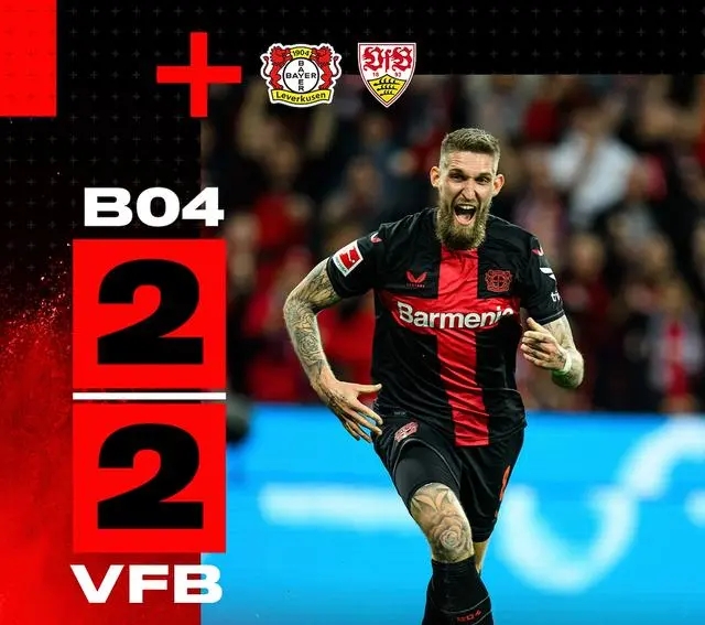 24直播网讯 德甲第31轮,勒沃库森主场2-2和斯图加特握手言和,连续3场绝平,各赛事46场不败!本赛季,药厂已经上演过多次绝杀或绝平!