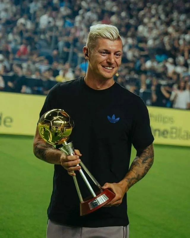 24直播网讯 克罗斯当选2024年度德国足球先生,他领取奖杯并发表了获奖感言: