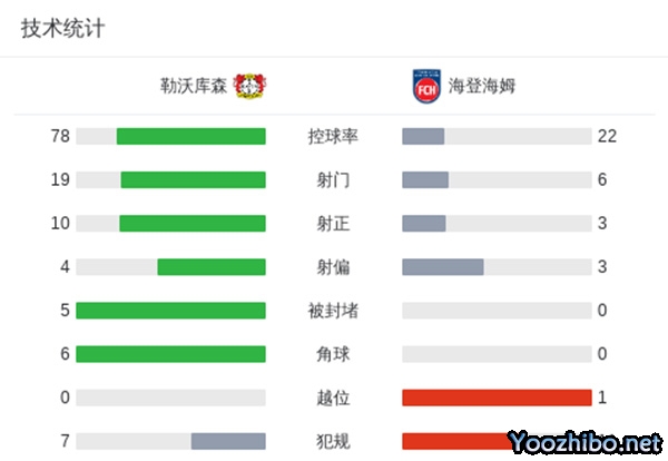 全场比赛结束,勒沃库森5-2海登海姆!