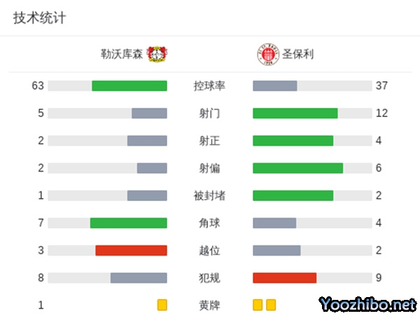 最终,勒沃库森2-1击败圣保利。
