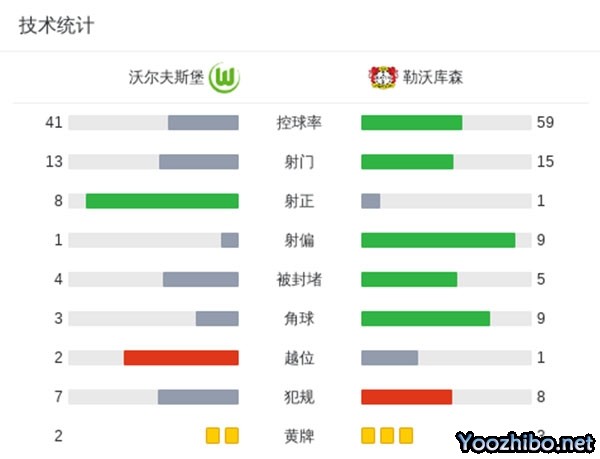 全场比赛结束,沃尔夫斯堡0-0勒沃库森!