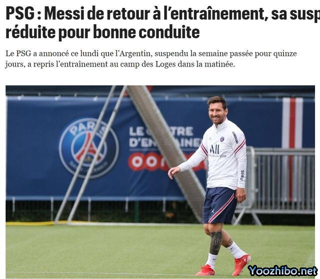 巴黎人报:梅西因表现良好缩短停赛 巴黎其他球员今天休息