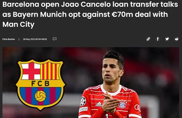 西媒:巴萨开启坎塞洛租借谈判 拜仁拒绝与曼城7000万欧交易