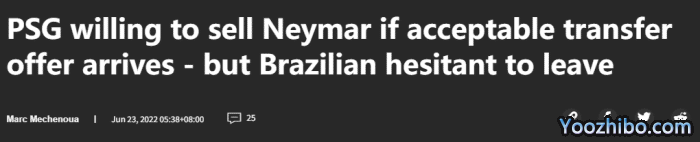 24直播网06月23日讯 据进球网报道,如果报价合适,巴黎愿意在今夏出售内马尔,但球员对于离队持犹豫态度。
