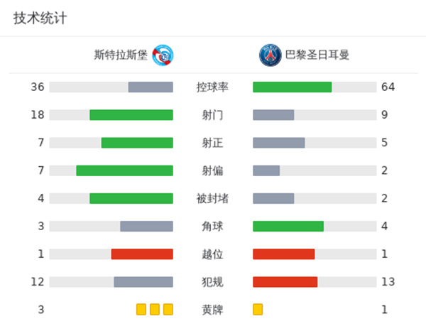 最终全场比赛结束,巴黎2-1斯特拉斯堡。