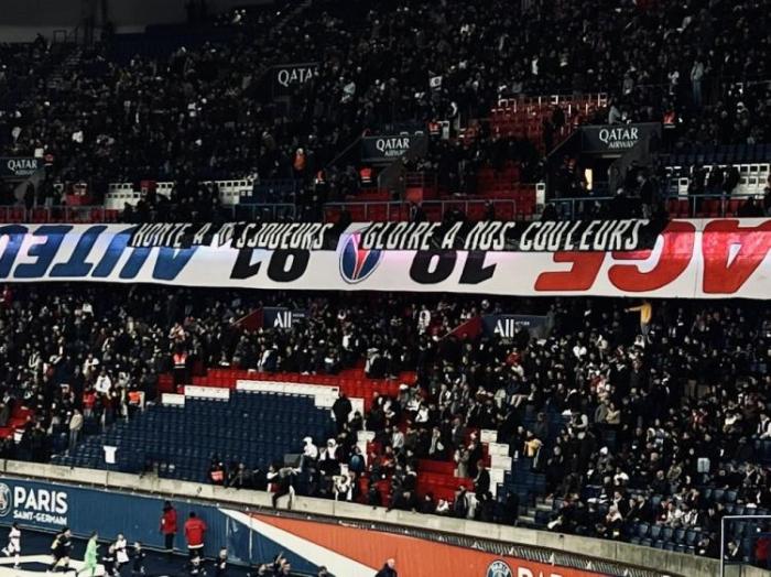 本轮对洛里昂时,巴黎球员在王子公园球场打出横幅“为我们的球员感到羞耻,为我们的颜色而荣耀”。