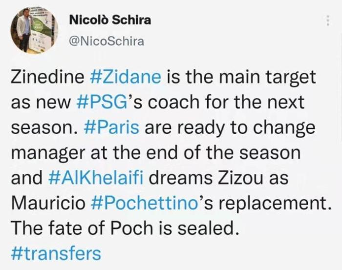 齐达内目前赋闲在家,他和阿森纳功勋主帅温格都是法国人。巴黎的另一个总监人选是利物浦的爱德华兹。《巴黎人报》消息,巴黎主席纳赛尔不会离队。