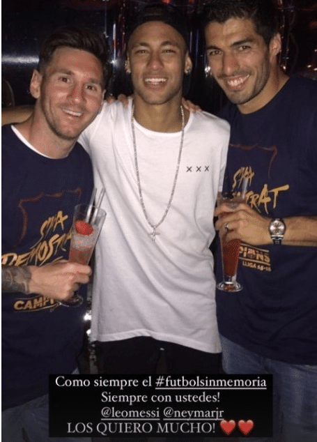 24直播网03月14日讯 消息,乌拉圭球星路易斯-苏亚雷斯发文支持前巴塞罗那队友内马尔和梅西。