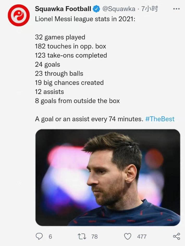 梅西在2021年的联赛数据统计