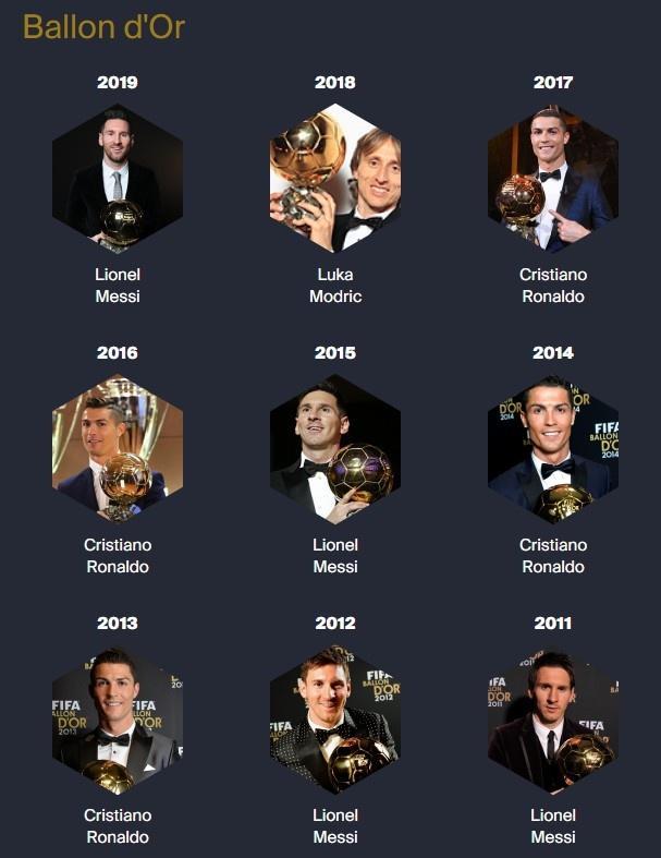 24直播网讯 2008年以后,金球奖几乎被梅罗垄断,梅西获得6次,C罗获得5次,到2018年莫德里奇才打破了绝代双骄的垄断,2019年梅西再次获奖,去年因故中断。