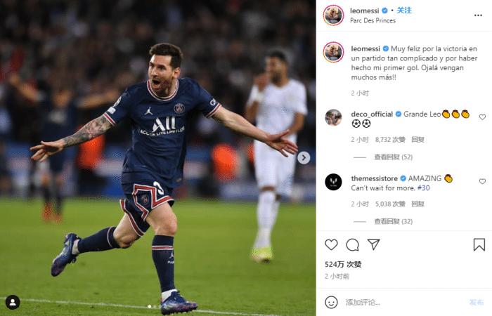 凭借盖耶和梅西的进球,巴黎今天在主场2-0击败了曼城,赛后梅西在Instagram上写道:“很高兴能在这场如此艰难的比赛中打进处子球,并帮助球队取胜。”
