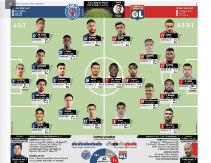 24直播网9月19日讯 赛前,《队报》预测了本场比赛双方的首发阵容。