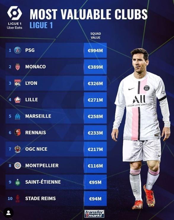 24直播网讯 今日,《转会市场》统计了法甲俱乐部身价榜,巴黎以9.94亿独自领跑,高于二到四名的总身价之和。