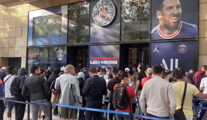 同时在巴黎的官方门店,也排起了长龙,大家都希望能够在梅西正式转会当天,得到一件梅西的30号战袍。相比起内马尔在2017年加盟的时候,场面还要疯狂。梅西的影响力可见一斑。