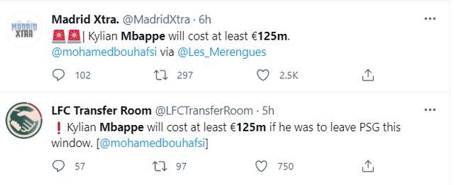 Mohamed Bouhafsi表示,如果今夏有球队想买姆巴佩,巴黎将所要1.25亿欧元的转会费,目前姆巴佩在德转上的身价为1.6亿欧元,尽管巴黎已经降低了要价,但即使是皇家马德里和利物浦这样的豪门球队,也难以承担这样的费用。