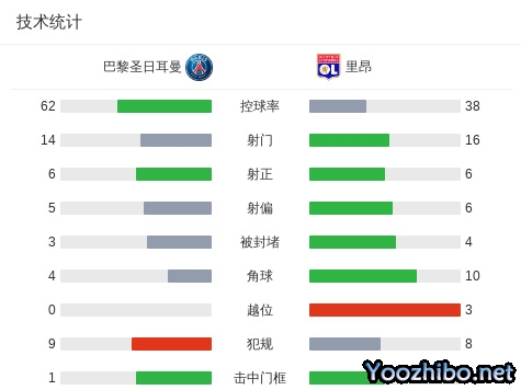 全场比赛结束,巴黎4-1轻取里昂。