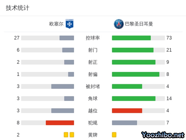 最终巴黎0-0欧塞尔。