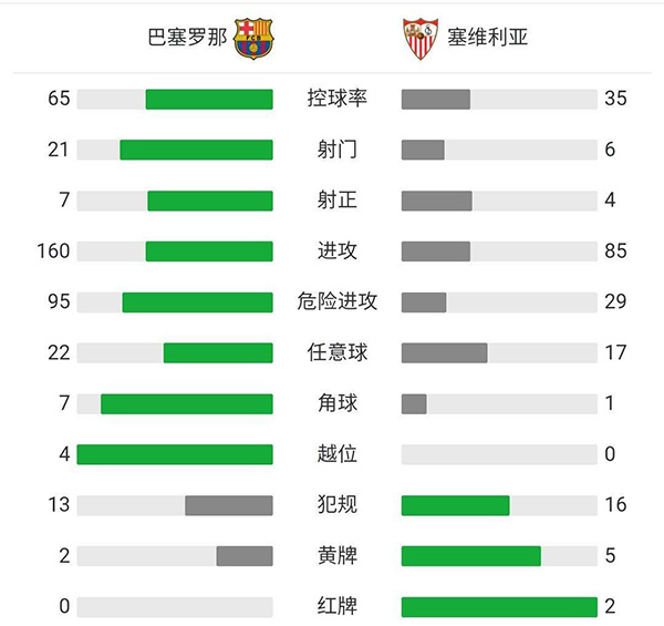 最终全场比赛结束,巴萨3-0,总比分总分3-2塞维进决赛。