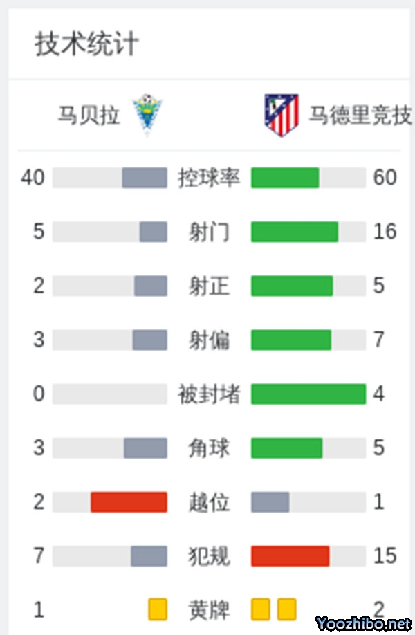 第16分钟,马竞取得领先!小西蒙尼禁区右路接格列兹曼中路斜传小角度抽射被扑,第二点格列兹曼补射破门,马贝拉0-1马竞。
