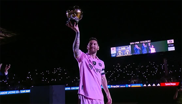 梅西第8次斩获金球奖,也实现了职业生涯在效力俱乐部期间全部夺得金球奖的壮举。梅西以阿根廷队和迈阿密国际的球员在巴黎领取自己的第8座金球奖,颁奖的是他的俱乐部主席、老板之一的贝克汉姆。这也是迈阿密国际队史上第一次获得欧洲金球奖的球员,成为大赢家。