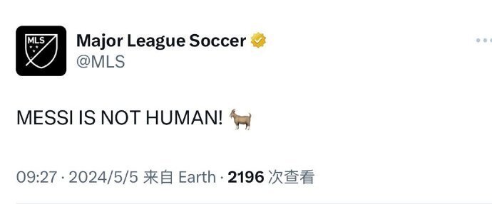 梅西也因此得到了10分的满分,与本场上演帽子戏法的苏亚雷斯,同样并列全场最佳。赛后,美职联官推第一时间盛赞梅西:“他不是人类!”并且附上了象征史上最佳的“山羊”表情。