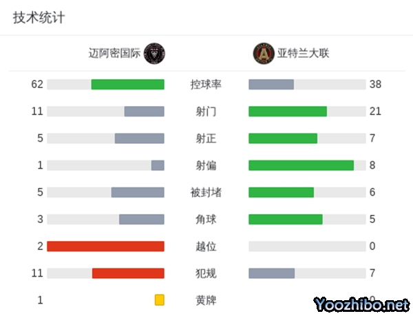 全场比赛结束,迈阿密国际1-3亚特兰大联。
