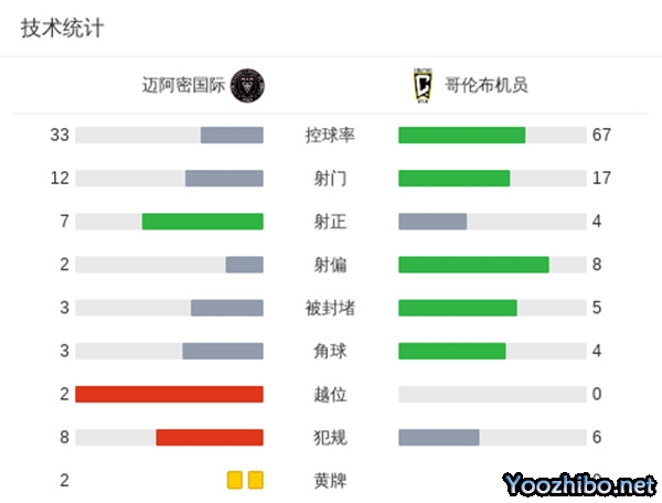 全场比赛结束,迈阿密国际2-1哥伦布机员。